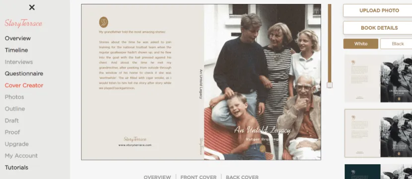 In fact, StoryTerrace is here to help you at every stage of the memoir-writing process. Our goal is to help you put your story into a book that you can be proud of — title and cover image included.